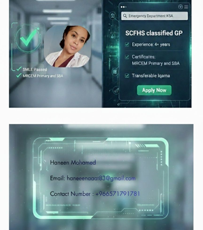 General Practitioner (Sudanese) SCFHS classified/ 4 + years ER and OPD experience/ Transferable Iqama