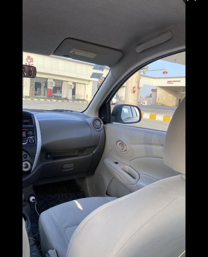 Nissan Sunny 2015, automatic transmission. Engine, brakes, chassis, tires, suspension, and consumable parts are all original. Upholstery and air conditioning are original. There is some paintwork on the rear fender and bumper. Mileage: 300,000 km. Registration and inspection are renewed. Location: Al-Kharj.