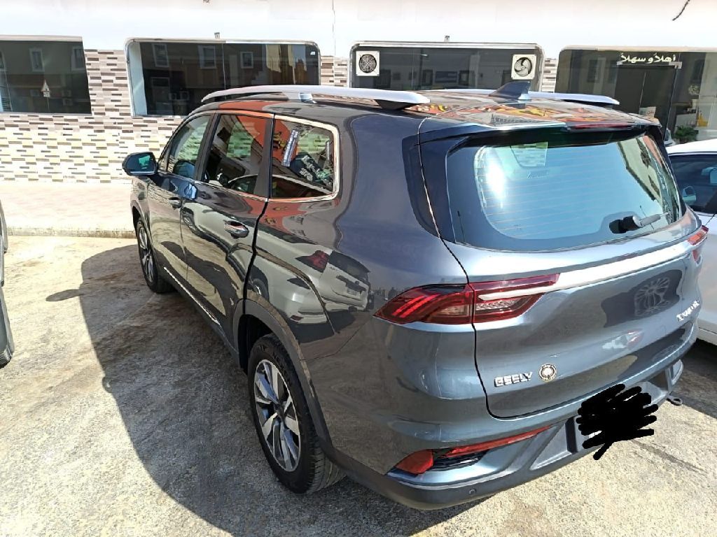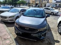 2022 Geely Okavango featuring a 1.5L turbocharged 3-cylinder gasoline engine with 190 horsepower and 255 Nm torque, equipped with a 7-speed automatic transmission and front-wheel drive. External features include LED headlights, panoramic sunroof, and rear sensors with camera. The interior contains a 12.3-inch touchscreen, leather seats, and dual-zone climate control.