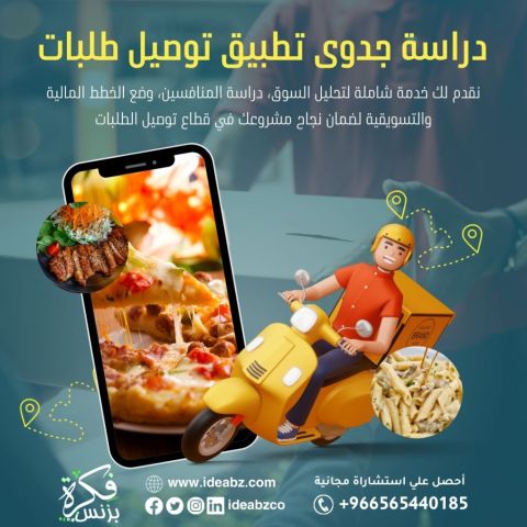 دراسة جدوى مشروع توصيل الطلبات يعمل علي ربط المستخدمين والمحلات التجارية، المطاعم والصيدليات لتوصيل الطلبات الى المنازل المشروع يستهدف السوق المتنامي في قطاع التجارة الالكترونية والتوصيل في المملكة العربية السعودية