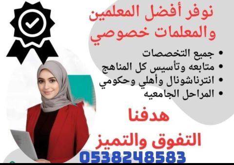 معلمة تأسيس ومتابعه ونوفر معلمين ومعلمات جميع التخصصات
