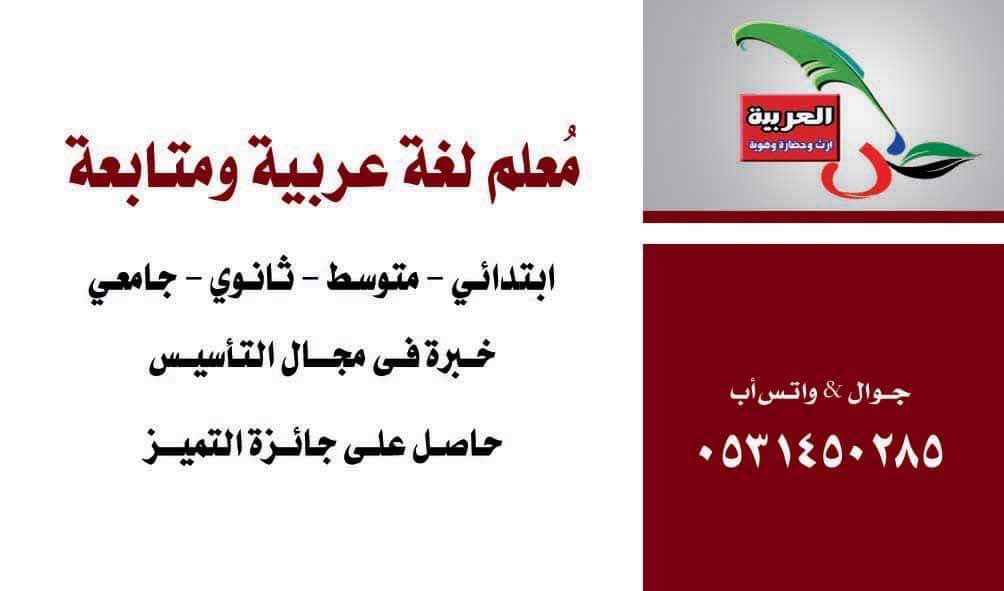 معلم متابعة وتأسيس حاصل على جائزة التميز، ابتدائي، متوسط، ثانوي، جامعي لغة عربية