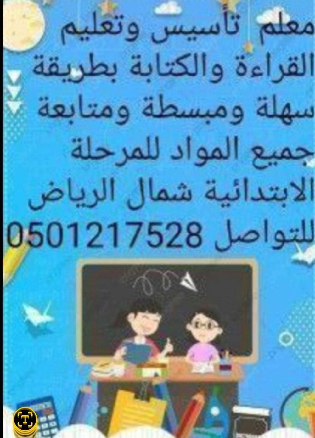 معلم خبرة تأسيس وتعليم القراءة والكتابة ومتابعة جميع المواد للمرحلة الابتدائية شمال الرياض
