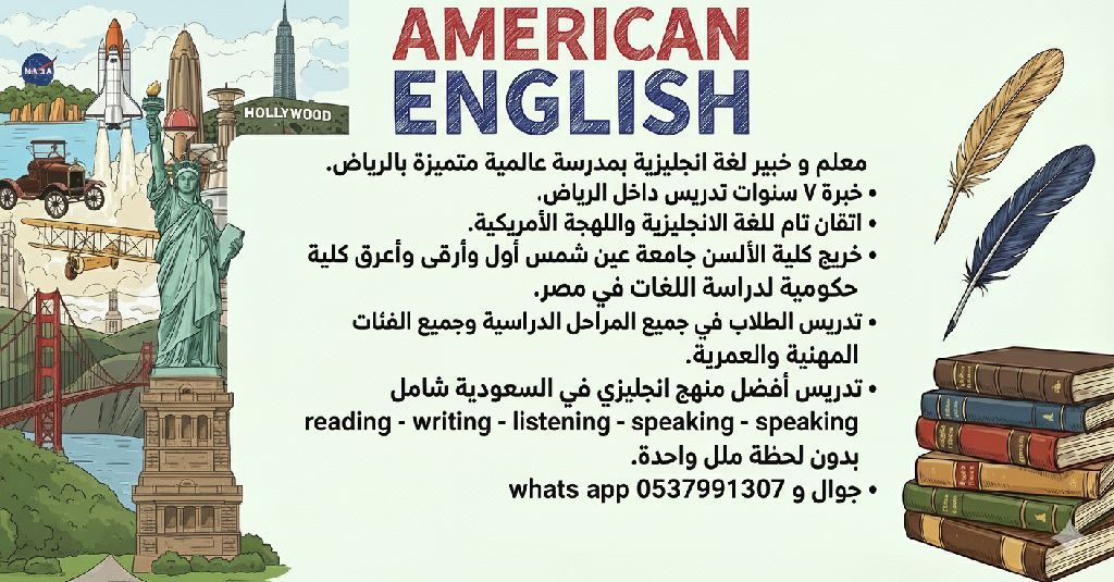 معلم وخبير لغة انجليزية بمدرسة عالمية متميزة في الرياض. خبرة 7 سنوات تدريس داخل الرياض. اتقان تام للغة الانجليزية واللهجة الأمريكية. خريج كلية الالسن جامعة عين شمس أول وأرقى وأعرق كلية حكومية لدراسة اللغات في مصر. تدريس الطلاب في جميع المراحل الدراسية وجميع الفئات المهنية والعمرية. تدريس أفضل منهج انجليزي في السعودية شامل reading - writing - listening - speaking