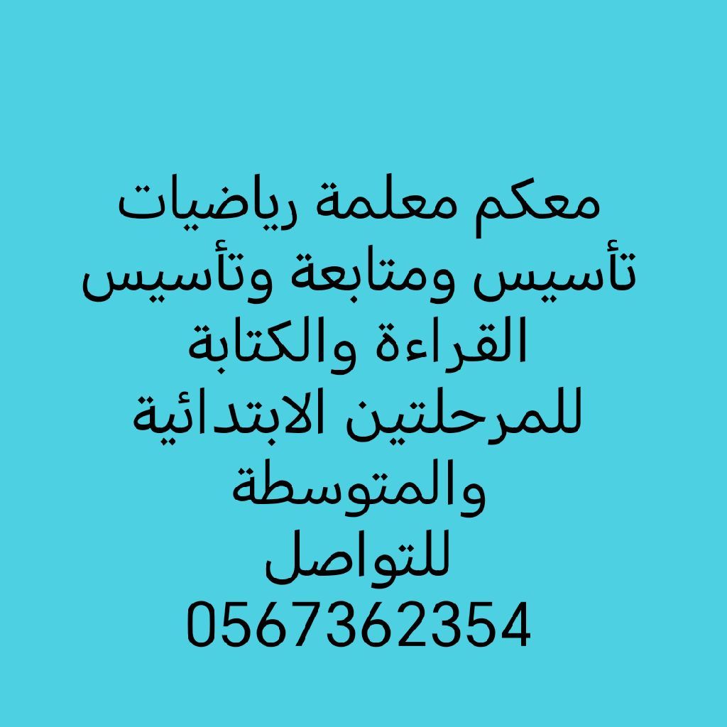 معلمة رياضيات تأسيس ومتابعة وتأسيس القراءة والكتابة للمرحلتين الابتدائية والمتوسطة