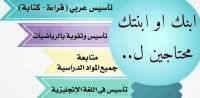 1 - مدرس سوري متابعة وتأسيس للمرحلتين الابتدائية والمتوسطة. 2 - تدريس ومتابعة جميع مواد الجدول الدراسي مع مادة اللغة الانكليزية. التدريس يكون في الأحياء التالية النسيم، السعادة، الفيحاء، الجزيرة، السلام، السلي