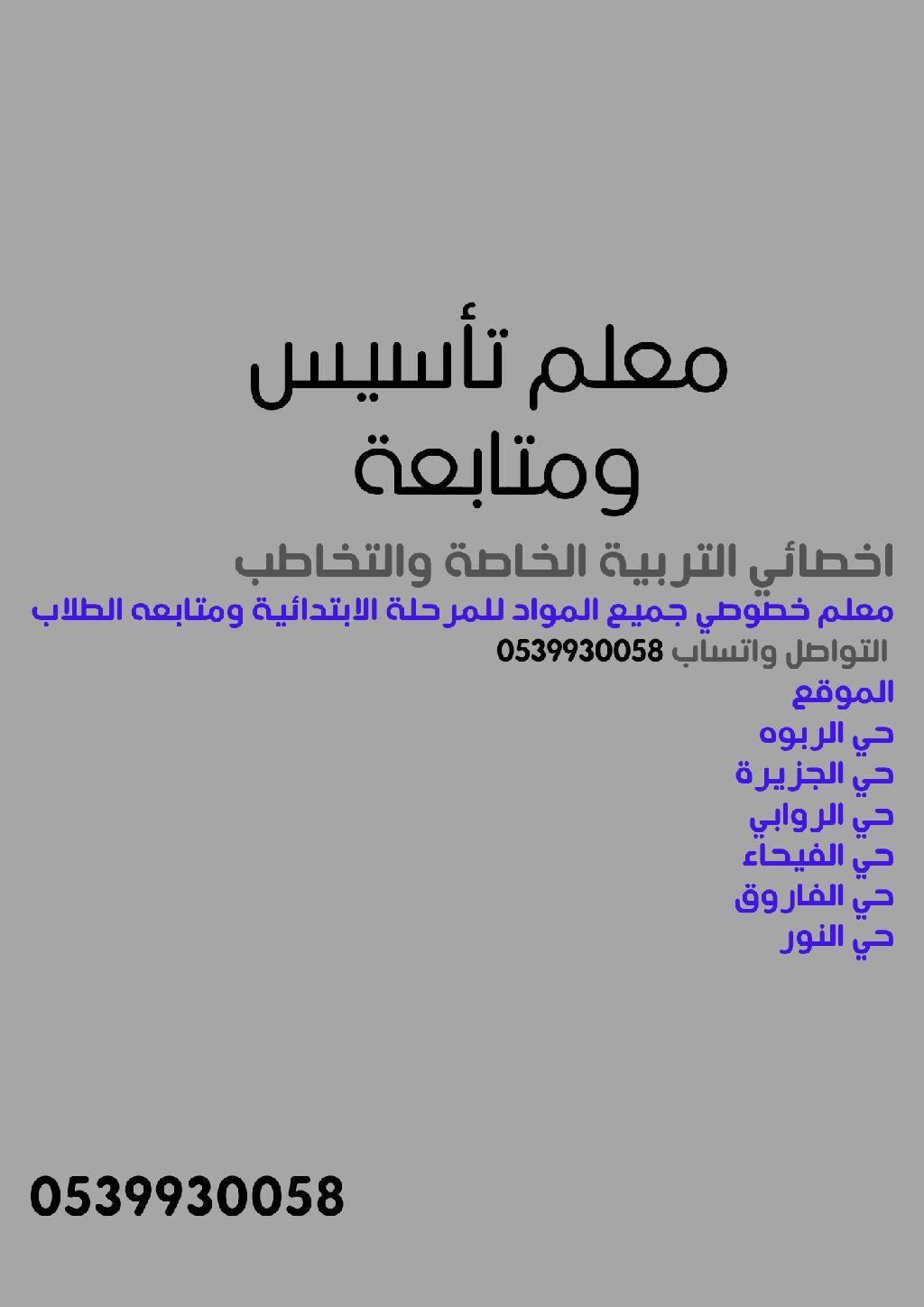 معلم تأسيس ومتابعه وأخصائي نطق ولغة خبرة في مجال التربية الخاصه والتعامل مع جميع الحالات وتحفيظ القران الكريم