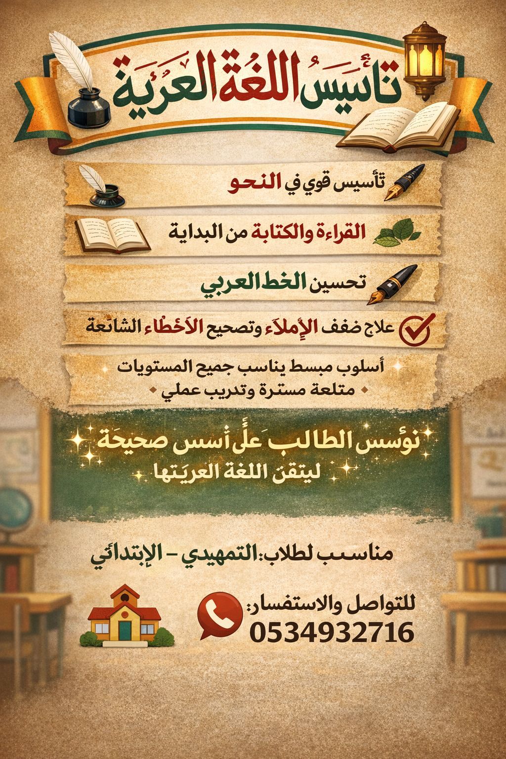 تدريس خصوصي لغة عربية (تأسيس - تقوية - أملاء - نحو) اجتماعيات دراسات اسلامية تحفيظ قرآن + تصحيح تلاوة شرح مبسط متابعة مستمرة أسلوب تربوي مميز