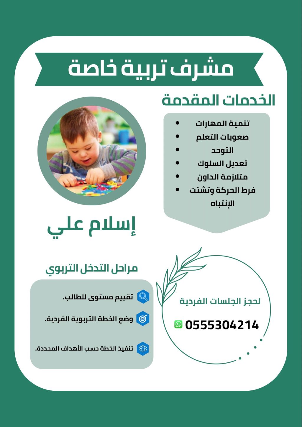 معلم تأسيس وأخصائي تربية خاصة بالنظام العالمي المتبع ABA تحليل السلوك التطبيقي تأسيس - متلازمة داون - توحد - تعديل سلوك - تنمية مهارات - صعوبات تعلم - فرط حركة وتشتت انتباه