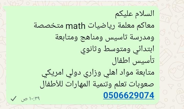 معلمة تأسيس ومناهج ومتابعة معلمة رياضيات Math متخصصة مدربة لغة انجليزية تأسيس طلاب مناهج ومتابعة مواد أهلي ودولي لغتي رياضيات لغة انجليزية Math, English, science صعوبات التعلم