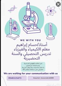 أستاذ/ حسام إبراهيم، معلم كيمياء وفيزياء وأحياء. تدريس التحصيلي والسنة التحضيرية واختبارات الرخصة المهنية للمعلمين، اختبارات ومتابعة دورية، للتواصل