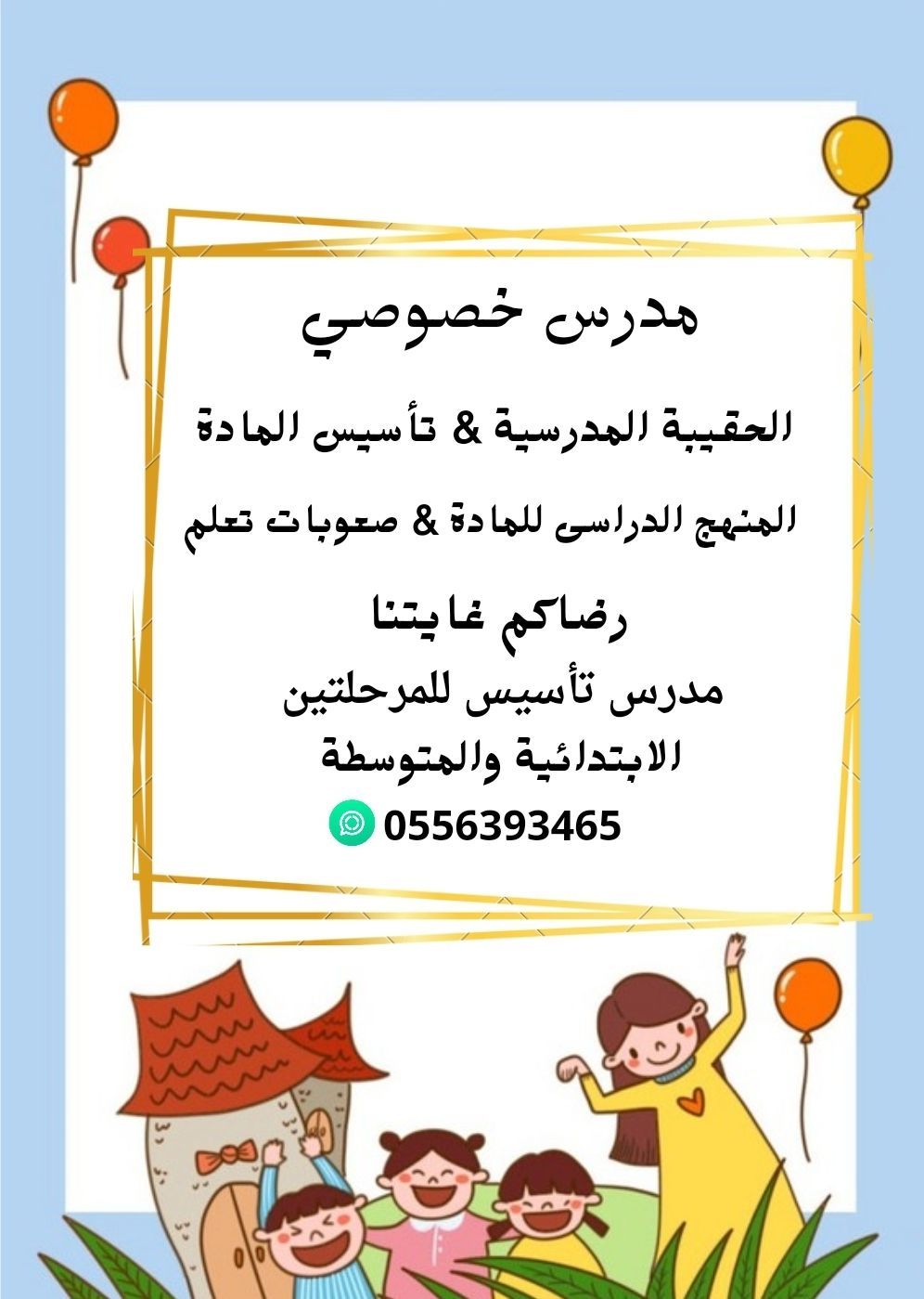 مدرس خصوصي للمرحلة الابتدائية والمتوسطة حاصل على ليسانس أداب وتربية كلية التربية دبلوم مهني صعوبات التعلم دبلوم مهني التربية الخاصة دبلوم خاص صحة نفسية ماجستير صحة نفسية تدريس الحقيبة المدرسية