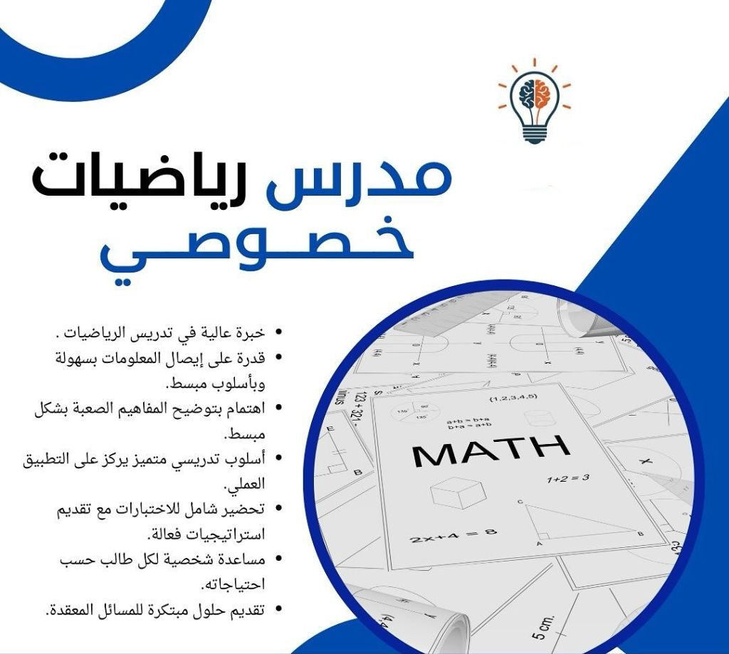مدرس رياضيات خصوصي، ثانوي متوسط ابتدائي. متابعة يومية وشرح دروس جديدة ومراجعة أسبوعية