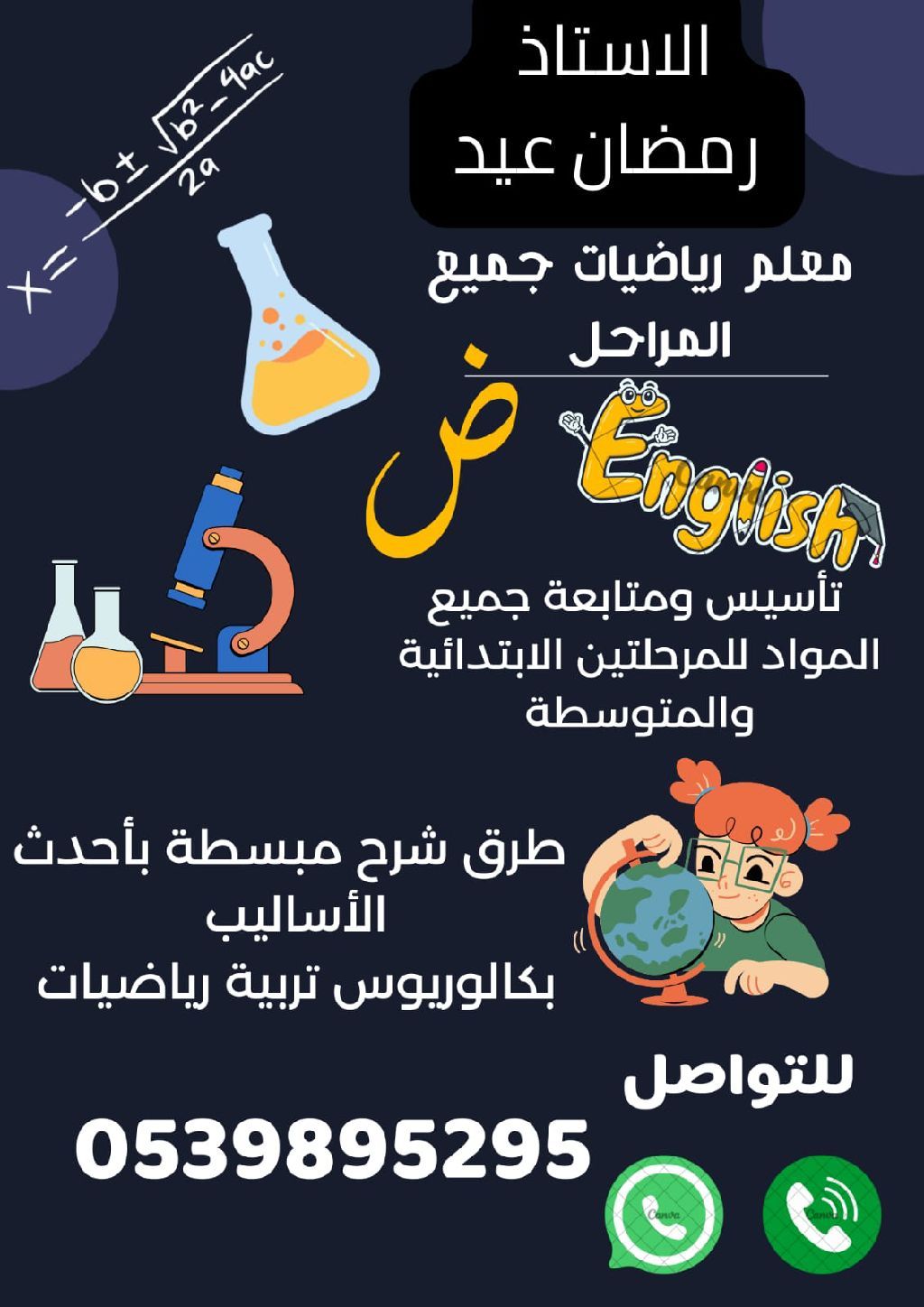 معلم رياضيات جميع المراحل (قدرات كمي وتحصيلي) وجميع المواد للمرحلتين الابتدائية والمتوسطة تأسيس ومنهج حضوري / الرياض