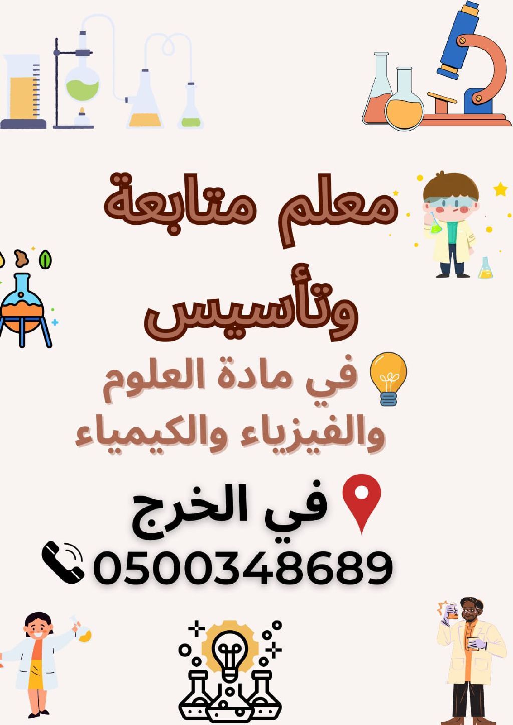تأسيس ومتابعة علوم - كيمياء - فيزياء من الصفر أبسط الشرح وأخلي الطالب يفهم ويحب المادة متابعة مستمرة + واجبات + اختبارات تقييم دروس اونلاين لجميع المراحل الدراسية تواصل واتساب ابدأ معنا من الصفر ووصل للقمة بثقة