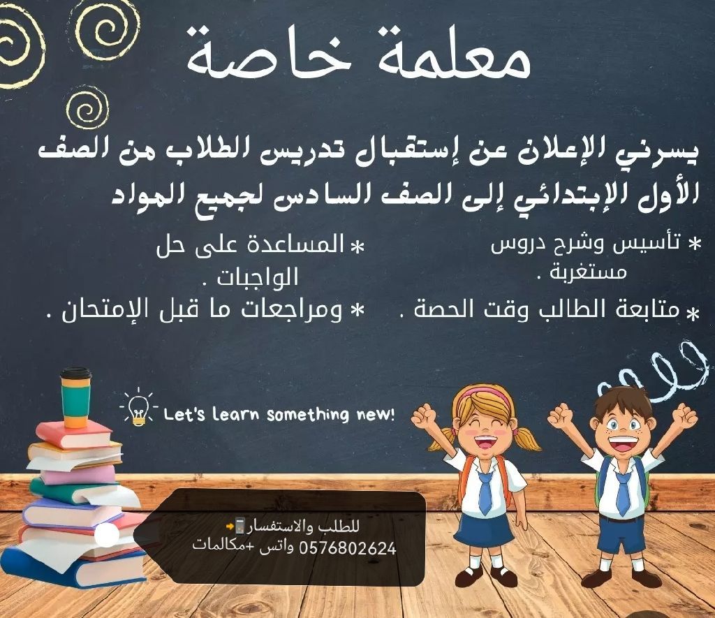 معلمه تأسيس ودروس خصوصيه لمرحلة الأساس من الصف الأول للصف السادس