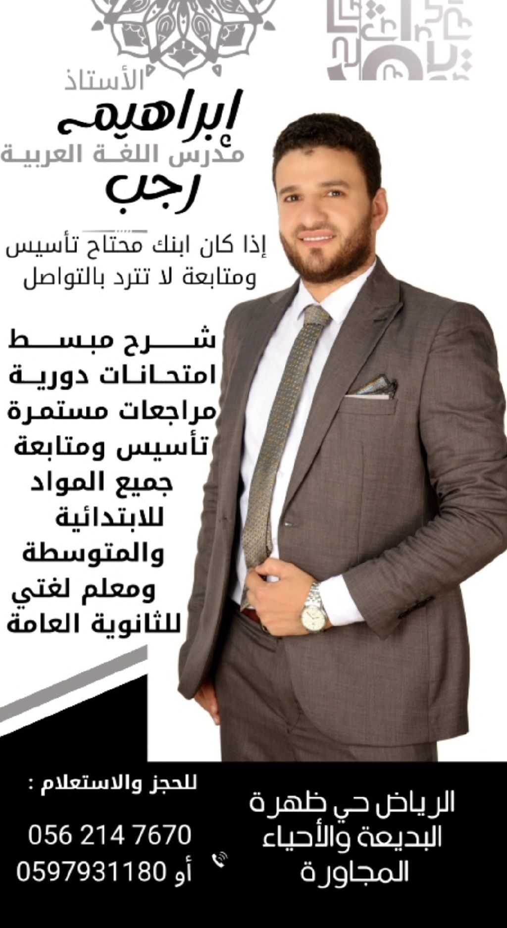 اذا كنت محتاجا لمعلم يتابع مل المواد والتأسيس من الصفر الأستاذ إبراهيم رجب معلم لغتي ومتابعة وتأسيس خبرة 12 سنة في التعليم متواجد في الرياض حي ظهرة البديعة للتواصل