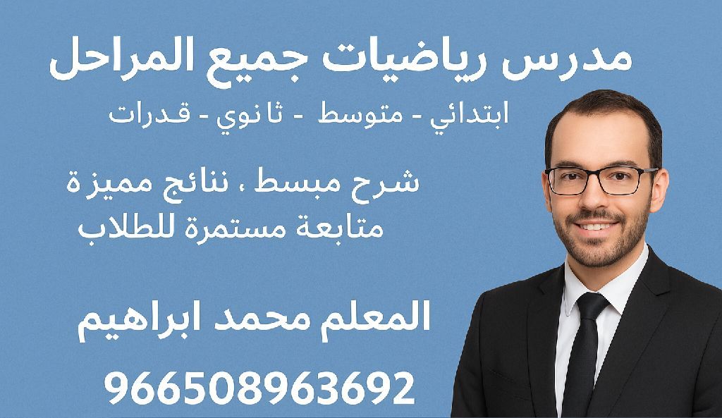 مدرس رياضيات خبرة في تدريس جميع المراحل (ابتدائي - متوسط - ثانوي) بالاضافة الى تدريب طلاب القدرات. التدريس متاح حضوري داخل الرياض وأيضا اونلاين