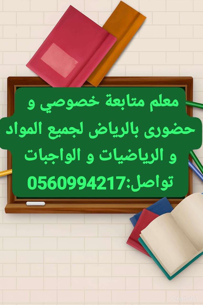 مدرس متابعة في الرياض ورياضيات ونقوم بمتابعة الواجبات وجميع المواد وتأسيس الطلاب