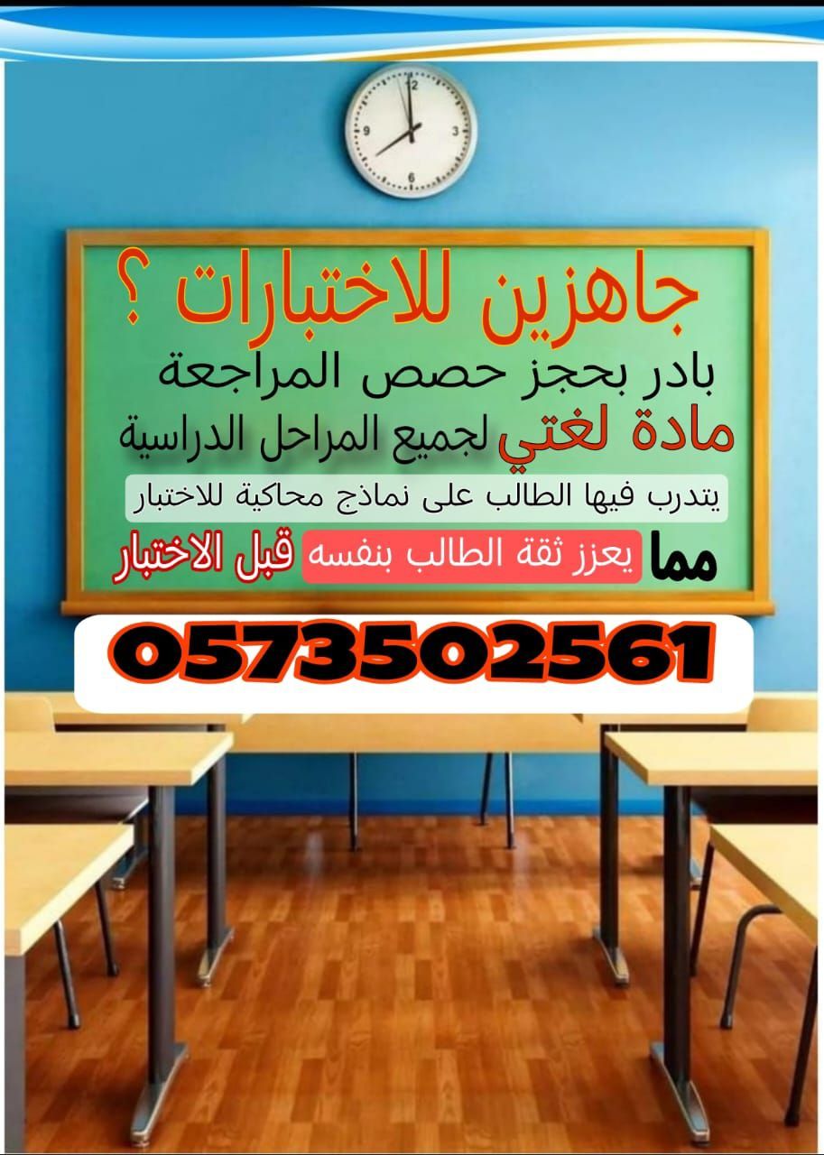 جاهزين للاختبارات قدمنا لكم حصص مراجعة مركزة لمادة لغتي لجميع المراحل المستهدفة، بأسلوب مبسط يساعد الطالب على فهم الدروس وتثبيت المهارات الأساسية في القراءة القواعد والإملاء. مميزات المراجعة شرح واضح ومبسط تدريب على نماذج مشابهة للاختبار متابعة فردية للطلاب تعزيز الثقة قبل الاختبار