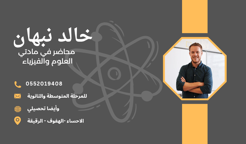 مدرس علوم وفيزياء متمكن نتائج مضمونة هل تبحث عن شرح واضح + تأسيس قوي + درجات أعلى الحل عندك الأستاذ / خالد نبهان عبد الجواد مدرس علوم للمرحلة المتوسطة مدرس فيزياء للثانوي العام تحصيلي (تأسيس + مراجعة + نماذج اختبارات) ماذا أقدم للطالب تبسيط المنهج مهما كان صعب تأسيس من الصفر حتى الاحتراف حل أسئلة وزارية ونماذج اختبارية متابعة مستمرة لرفع المستوى أسلوب شرح ممتع وسهل الفهم المواعيد متاح جميع