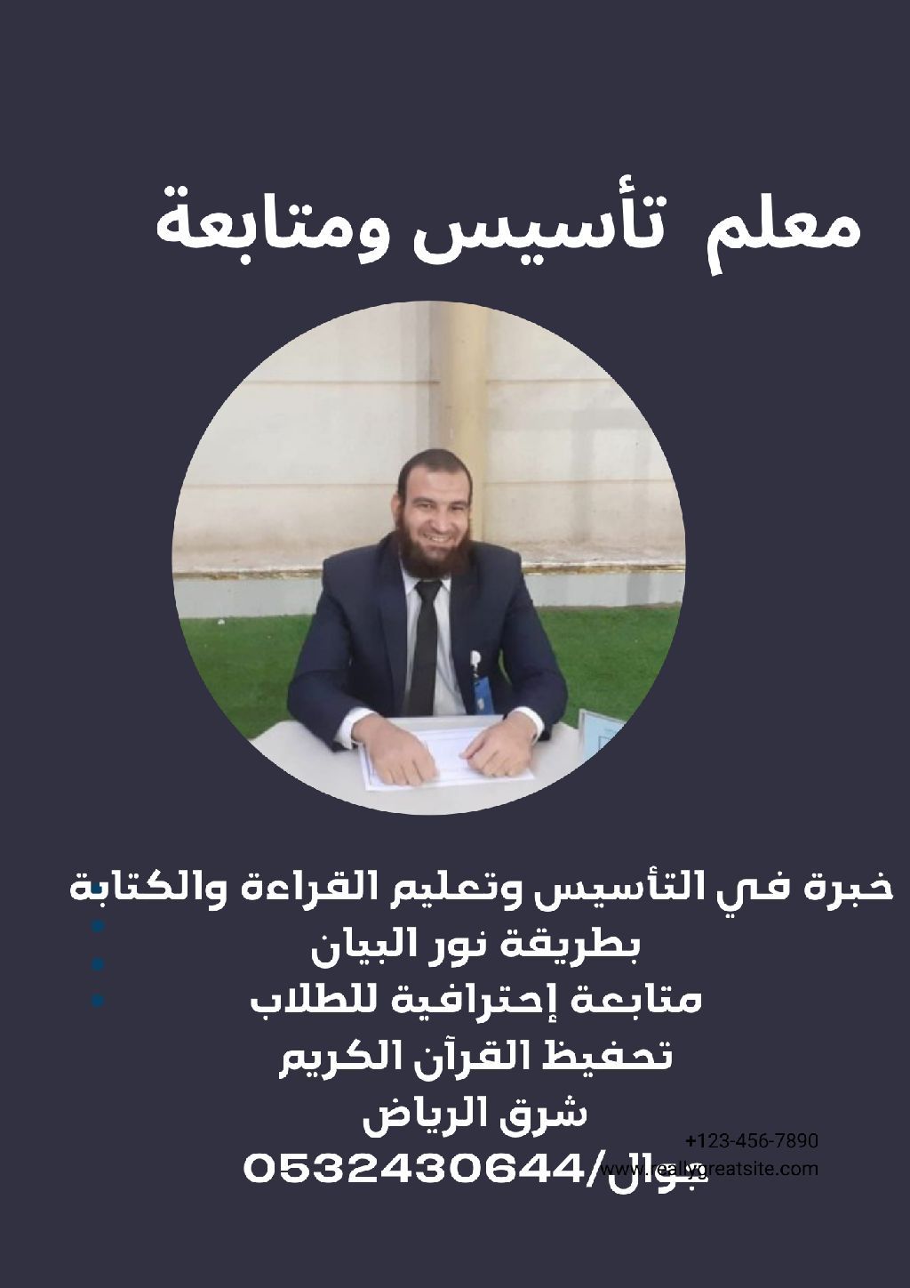 معلم تأسيس ومتابعة لجميع المراحل هل يعاني طفلك من صعوبات في القراءة أو الكتابة أو الحساب هل تبحث عن متابعة مستمرة وتقوية في المواد الأساسية معلم متخصص في التأسيس والمتابعة يقدم تأسيس شامل في القراءة والكتابة والإملاء مهارات الرياضيات الأساسية متابعة دراسية لجميع المواد وفق المنهج الدراسي استخدام وسائل تعليمية ممتعة ومحفزة تحسين مستوى الطالب بطريقة مبسطة وتدريجية خبرة في