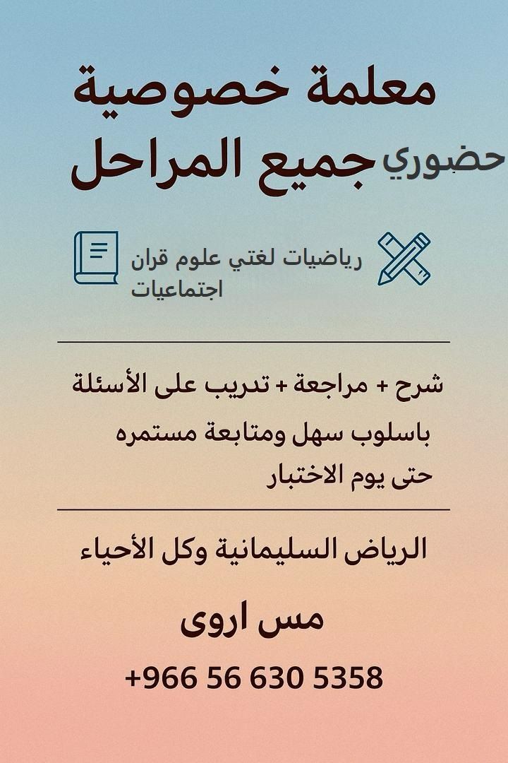 معلمة خصوصية جميع المراحل شرح ومتابعه وتدريب على الأسئلة