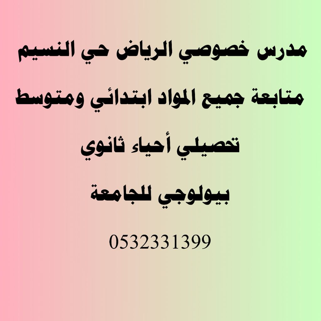 مدرس خصوصي الرياض حي النسيم متابعة جميع المواد ابتدائي ومتوسط تحصيلي أحياء ثانوي بيولوجي للجامعة
