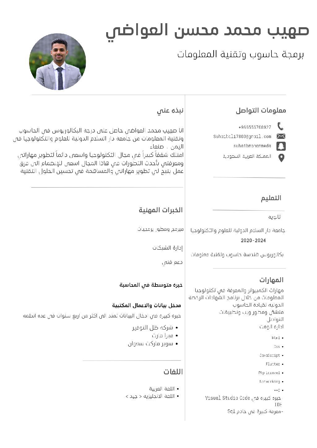 مستعد للانتقال لمرحلة جديدة ابحث عن فرصة في برمجة الويب وتطبقيات وادارة الشبكات والدعم الفني
