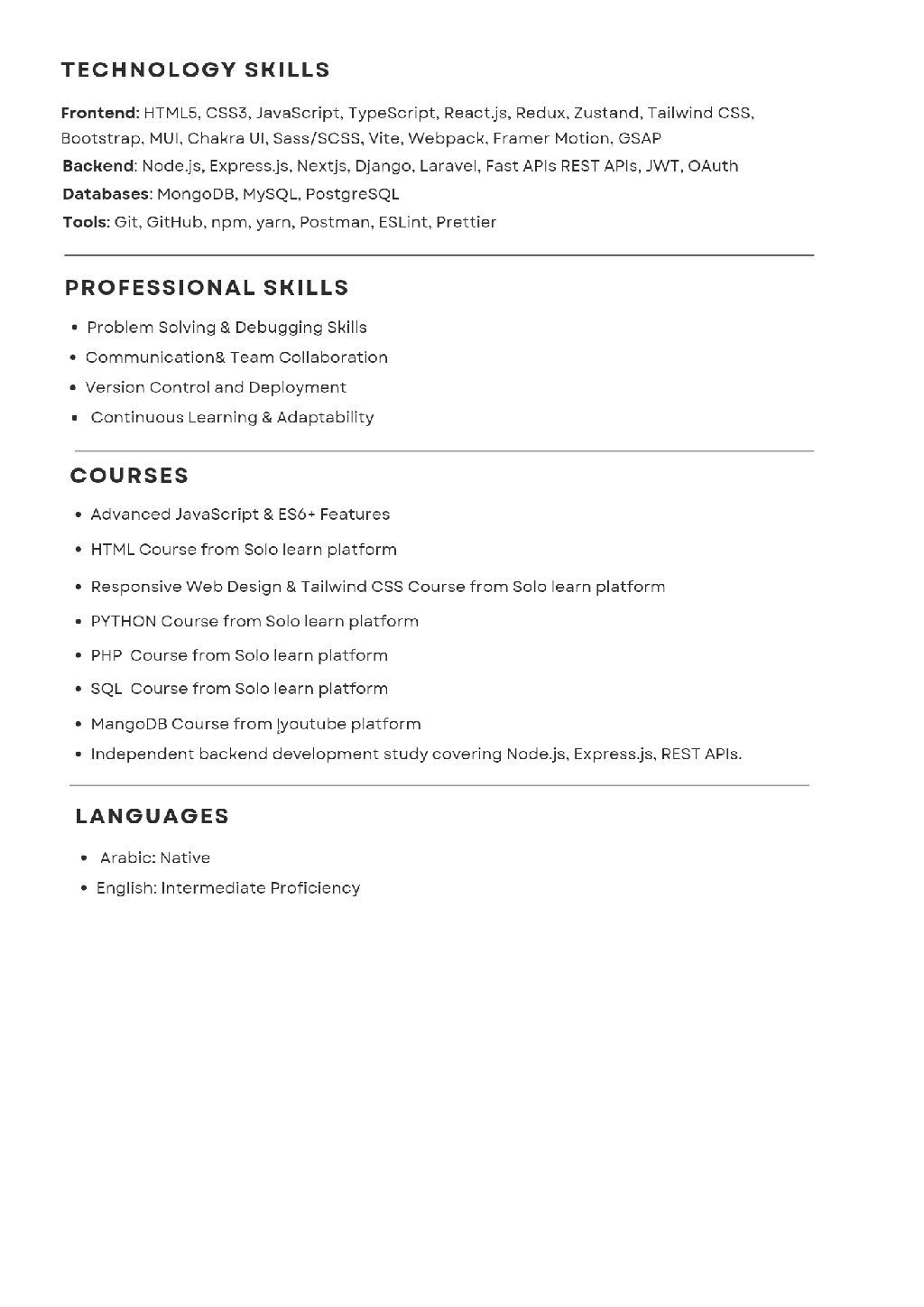 مطور ويب شامل - جاهز لنقل الكفالة - الرياض الوليد نصر الدين Full Stack Developer لدي اقامة سارية جاهز لنقل الكفالة فورا متواجد في الرياض للتواصل مباشرة عبر الخاص الرقم