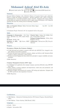 I am a Software Engineer in Riyadh, specializing in web development using C ASP. NET Core, MVC, and SQL Server. I have practical projects such as e commerce APIs and company management systems, and I am available to start immediately. I work on developing and programming websites and web applications, building professional REST APIs, developing corporate systems (HR, employee management, permissio