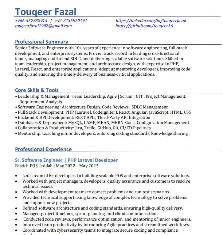 Software Team Lead Fastich - POS SEC Registered Engineer Senior Full Stack Developer Laravel & React 10 + Years Experience Senior Software Engineer Senior PHP Developer Cybersecurity Engineer