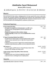 I am Abdalhalim Sayed, a backend developer specializing in PHP and the Laravel framework, currently based in Riyadh. I have both practical and academic experience (Bachelor's degree in Information Technology) and am capable of building and developing robust and secure websites, as well as professional control panels