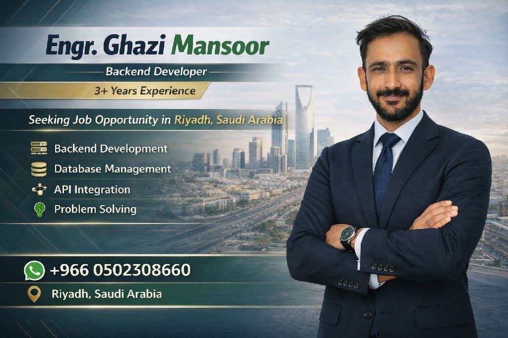 مهندس برمجيات (Backend Developer) بخبرة أكثر من 3 سنوات، متواجد في الرياض وجاهز للانضمام فورا. امتلك مهارات قوية في تطوير الأنظمة، إدارة قواعد البيانات، وتكامل أل API. ابحث عن فرصة عمل في شركة طموحة للنمو وتقديم أفضل الحلول التقنية. للتواصل 9660502308660 الرياض، المملكة العربية السعودية