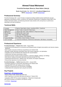 أنا Front - End Developer بخبرة عملية أكثر من سنة في تطوير تطبيقات الويب والموبايل باستخدام أحدث التقنيات. متخصص في بناء واجهات احترافية وسريعة باستخدام React. js وNext. js، بالاضافة الى تطوير تطبيقات موبايل باستخدام React Native. لدي خبرة في التعامل مع REST APIs وبناء أنظمة Dashboard وERP وأنظمة التجارة الالكترونية بشكل كامل. المهارات React. js/ Next. js/ React Native JavaScript (ES6 + TypeScript