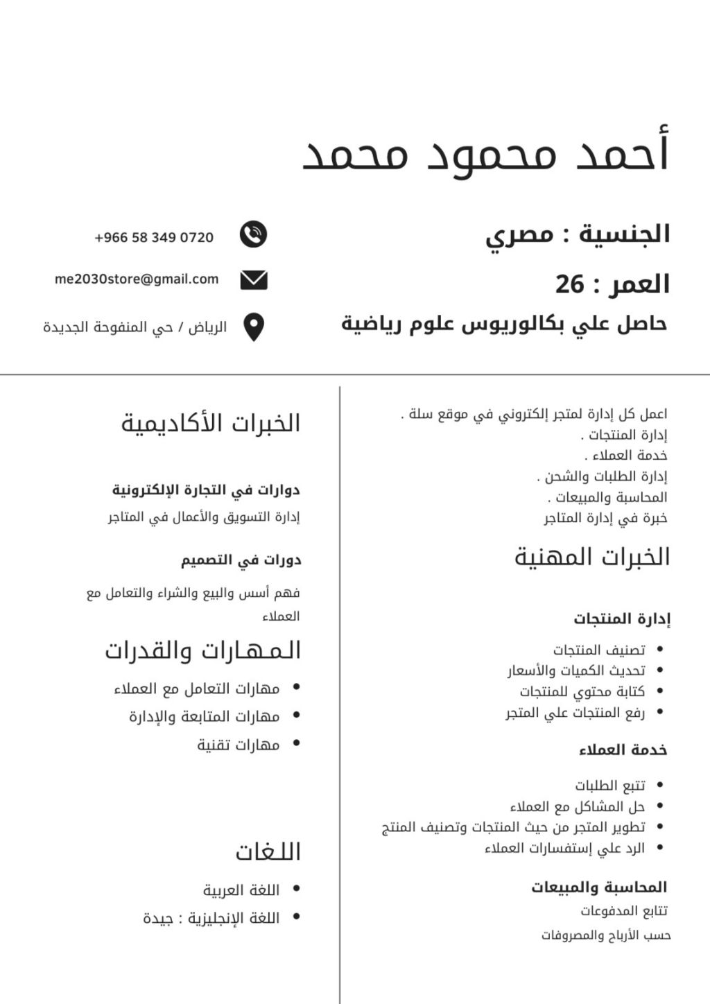 خريج علوم رياضية عندي خبرة في إدارة المتاجر الالكترونية علي موقع سلة الجنسية مصري عمري 26 عام وجاهز للعمل في أي وقت