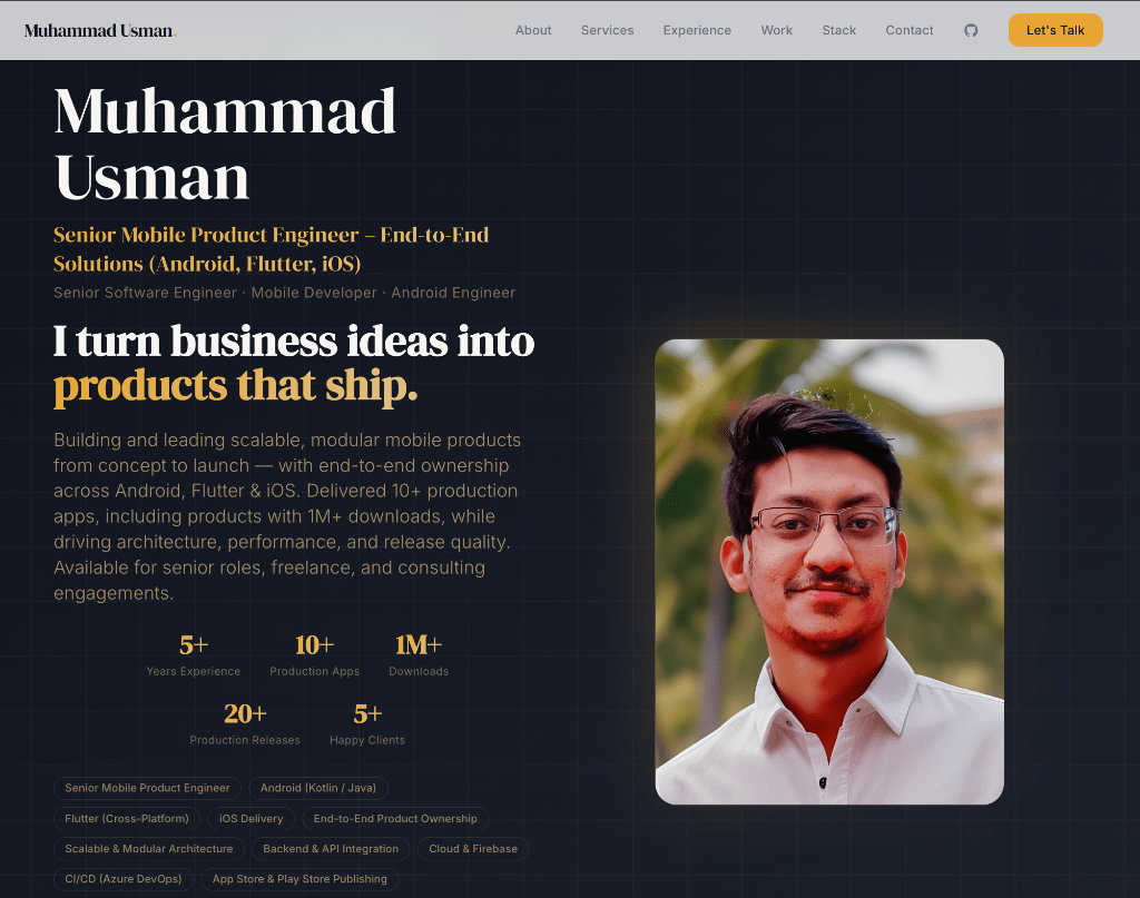 I am a full - stack product software engineer with 5 + years of experience building end - to - end solutions across mobile (Kotlin, Flutter, native iOS/ Android) web, and backend systems. I specialize in architecture design, CI/ CD pipelines, payment integrations, and app deployment. Skilled in Kotlin, Flutter, Java, Dart, APIs, databases, and DevOps. Experienced in fintech, healthcare, commerce, logistics