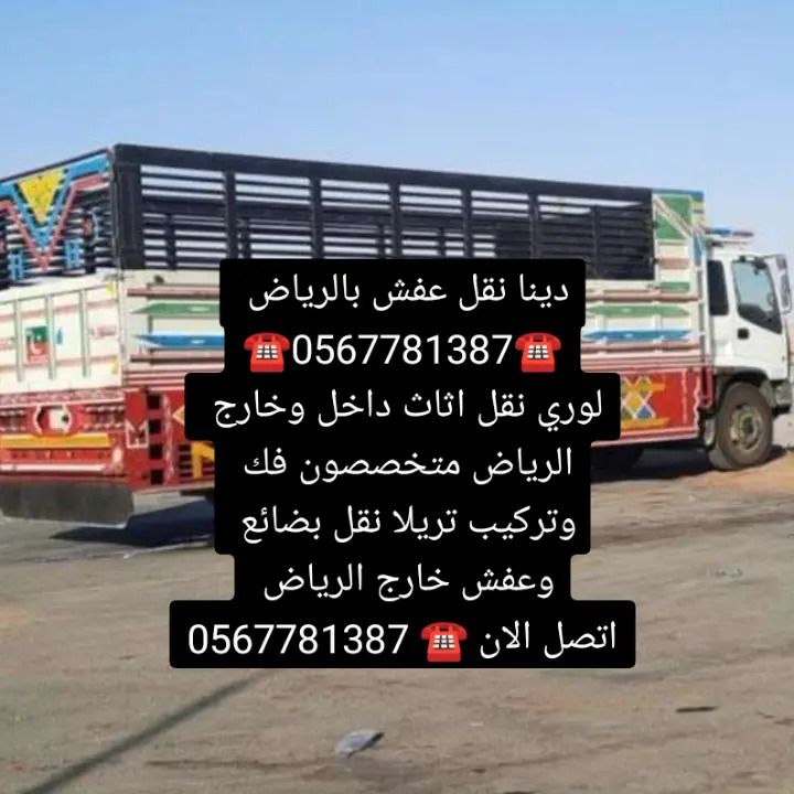 خدمة دينا نقل عفش داخل وخارج الرياض نقدم لك خدمة نقل الأثاث والعفش بأمان وسرعة عالية داخل مدينة الرياض وجميع مدن المملكة. خدماتنا فك وتركيب جميع أنواع الأثاث والمكيفات. تغليف احترافي لحماية الأثاث من الخدوش أثناء النقل. نقل داخل وخارج الرياض لجميع الأحياء والمناطق. نقل أثاث الفلل، الشقق، المكاتب، الاستراحات. سيارات (دينا - تريلات - سطحات) مجهزة للنقل الآمن. فريق متخصص ومدرب على أعلى مستوى. للتواصل