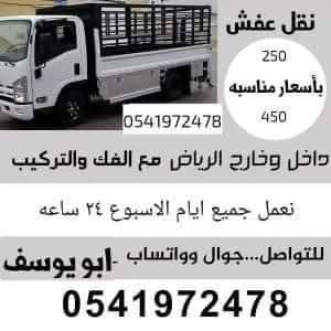 نقل عفش داخل وخارج الرياض فك وتركيب جميع أنواع غرف النوم والمكيفات والمطابخ سعر الرد شامل الفك والتركيب والتحميل والتنزيل 400 سعر نقل الكنب والمجالس والطاولات والاجهزة الكهربيه 200 السيارة مع العمال والتحميل والتنزيل سعر الرد بدون فك وتركيب تحميل وتنزيل فقط 300 سعر الرد السيارة فقط بدون عمال 150 والنجاح شعارنا الدقة والتميز والامانة في العمل اتصل نصلك أينما كنت خدمة 24 ساعة