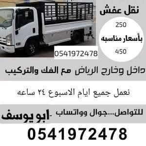 نقل عفش داخل وخارج الرياض فك وتركيب جميع أنواع غرف النوم والمكيفات والمطابخ سعر الرد شامل الفك والتركيب والتحميل والتنزيل 400 سعر نقل الكنب والمجالس والطاولات والاجهزة الكهربيه 200 السيارة مع العمال والتحميل والتنزيل سعر الرد بدون فك وتركيب تحميل وتنزيل فقط 300 سعر الرد السيارة فقط بدون عمال 150 والله ولي التوفيق والسداد والنجاح شعارنا الدقة والتميز والامانة في العمل اتصل نصلك أينما كنت خدمة 24 سا
