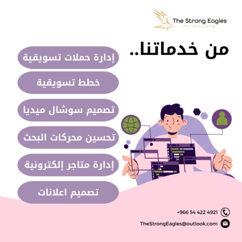 ادارة حملات تسويقية بالكامل - خطط تسويقية - ادارة حسابات سوشيال ميديا - تحسين محركات البحث SEO - إدارة متاجر الكترونية - تصميم اعلانات - تسويق المشاهير التيك توك