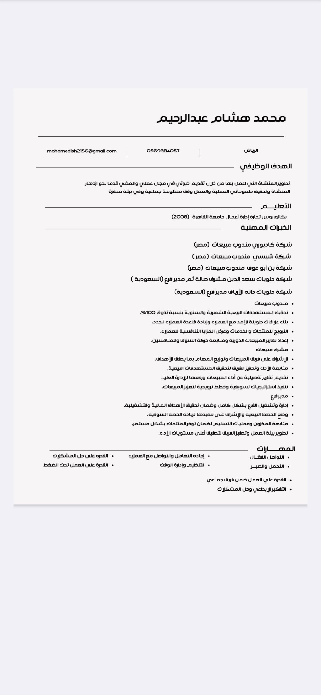 ابحث عن فرصة عمل في مجال المبيعات كمندوب بيع أو بائع خبرة بالمبيعات كمندوب بيع بشركة كاد بور وشيبسي وخبرة كبائع في مجال الحلويات لشركة حلويات سعد الدين ودانة الأرياف وأحتاج للعمل ومتاح رخصة خاصه سعودي مؤهل بكالوريوس تجارة