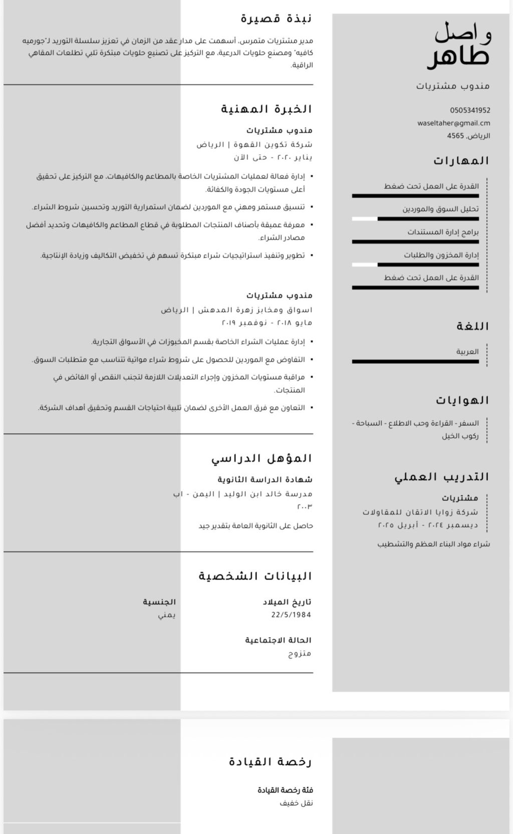 مندوب مشتريات نشيط ومرن وعلى معرفة تامة بأغلب الموردين في الرياض