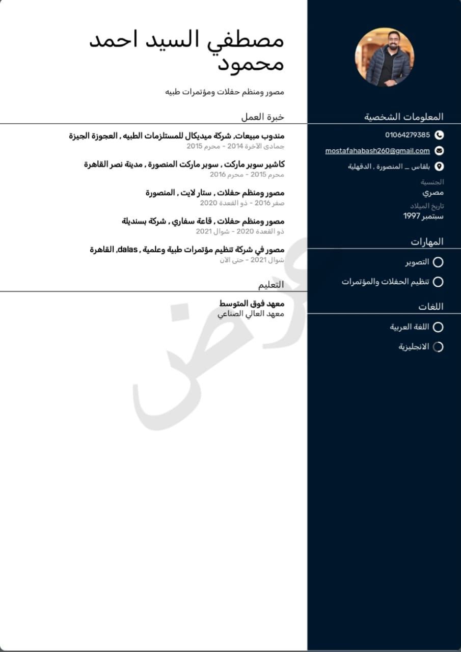 عملت في العديد من مجالات المؤتمرات وفي مجال المبيعات مدير سوبر ماركت لمدة 3 سنوات أنا موجود في الرياض حاليا معيه إقامة 3 شهور