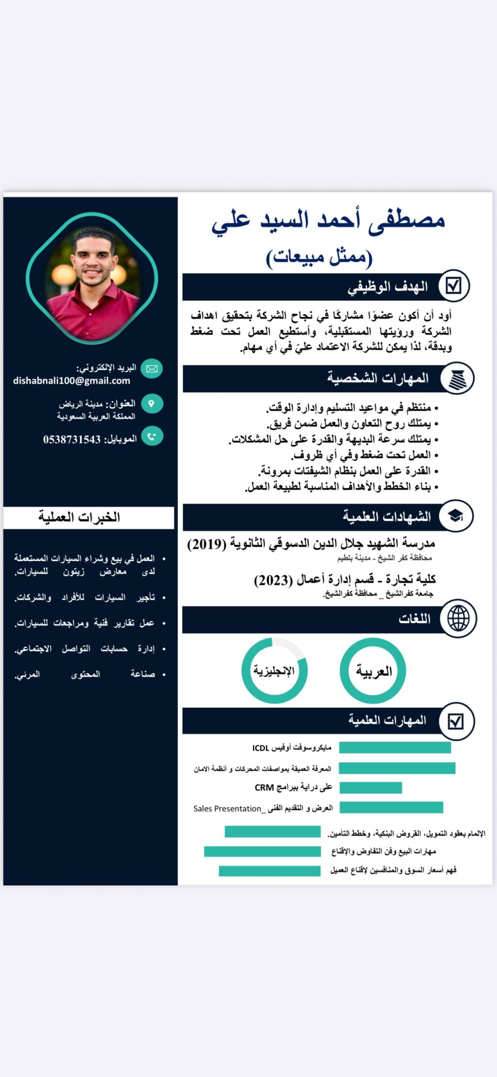 مصري الجنسية ابحث عن عمل ممثل مبيعات سيارات في المعارض إقامة سارية سنة السن 25 سنة