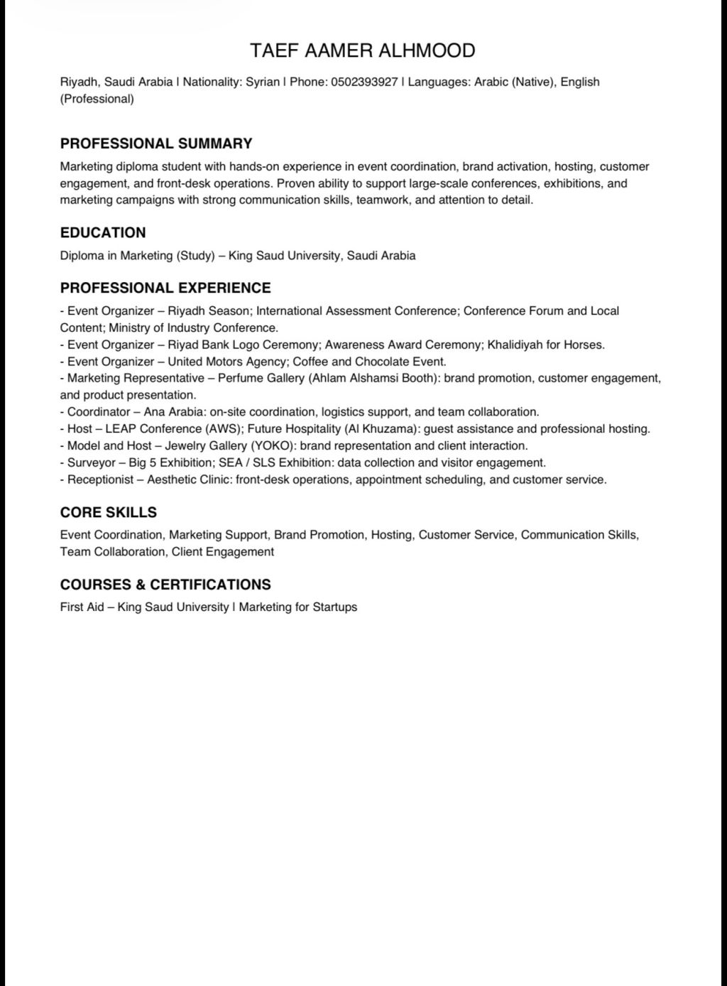 طالبه تسويق دبلوم في جامعة الملك سعود ابحث عن وظيفة مكتبيه سواء شركات عقار أو تسويق أو وكالات لدي خبرة في التسويق وخدمة المبيعات