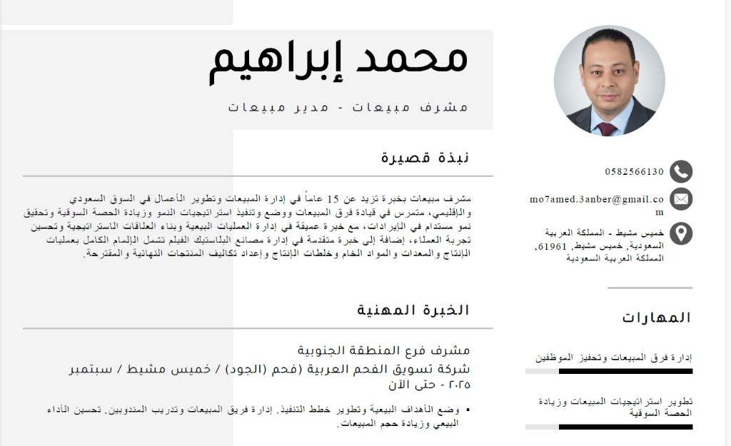 مشرف مبيعات - مدير مبيعات بخبرة تزيد عن 15 عاما في إدارة المبيعات وتطوير الأعمال في السوق السعودي والإقليمي، متمرس في قيادة فرق المبيعات ووضع وتنفيذ استراتيجيات النمو وزيادة الحصة السوقية وتحقيق نمو مستدام في الايرادات، مع خبرة عميقة في إدارة العمليات البيعية وبناء العلاقات الاستراتيجية وتحسين تجربة العملاء، اضافة الى خبرة متقدمة في إدارة مصانع البلاستيك الفيلم تشمل الالمام الكامل بعمليات الانتاج والمعدات
