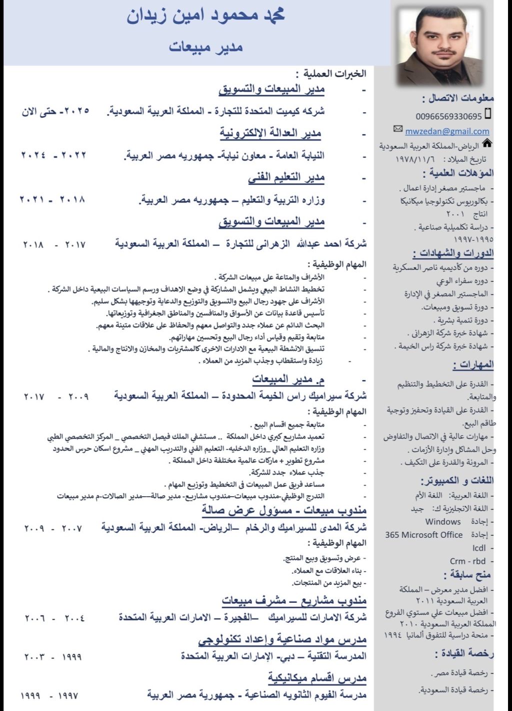 إدارة المبيعات والتسويق واعداد تقارير المبيعات وتنمية وتطوير المنتجات والمبيعات وتحليل السوق
