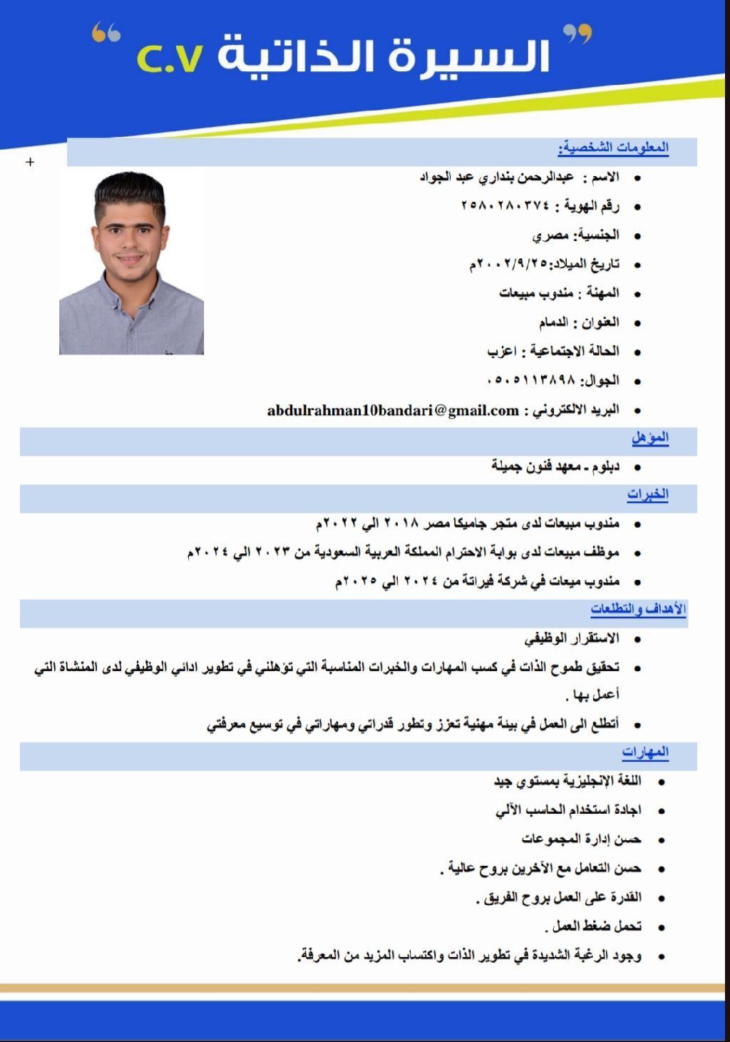 أرجو يكون العمل في مجال العطور أو مشرف في محلات المبيعات