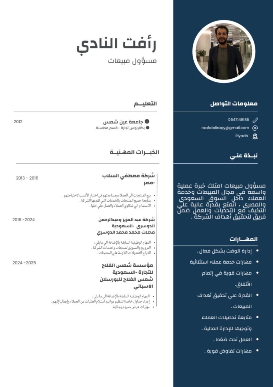 موظف مبيعات مختص في مجال السيراميك والبورسلان خبرة 10 سنوات داخل المملكة ومقيم في الرياض